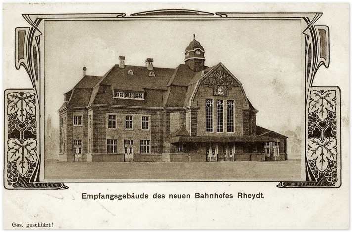 Rheydt-Geneicken mit neuem Bahnhofsgebäude um 1920.